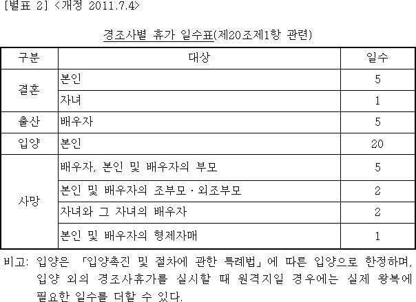 제일 일반적인 경우가 위의 국가공무원 경조사 일수에 맞추는 것이지만, 굳이 그럴 밖에야 왜 법을 저렇게 만들어??