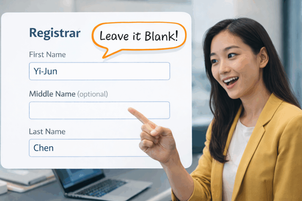 영어권에서는 first name과 last name 사이에 middle name이 들어가는 경우도 많습니다. 이는 추가적인 개인 식별 요소로 사용됩니다.